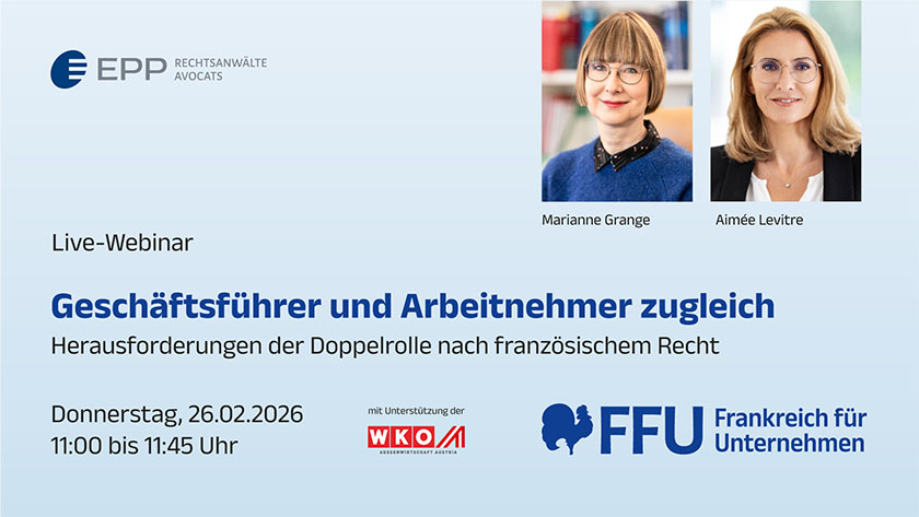 Webinar: "Geschäftsführer und Arbeitnehmer zugleich: Herausforderungen der Doppelrolle nach französischem Recht"